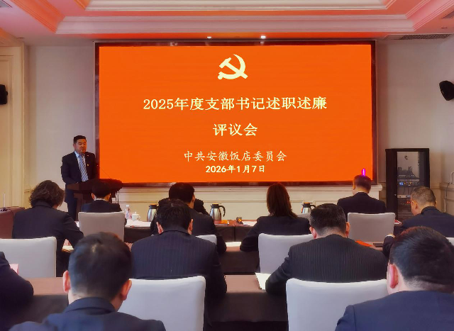 为全面回顾总结2025年度饭店各党支部、各部门落实年度党建工作及党风廉政建设和生产经营责任,检验支部书记和各级中层管理人员履职尽责能力和水平,科学谋划2026年各项党建工作和经营目标方向,进一步强化基层党组织战斗力和各级中层管理队伍建设。1月7日、8日,安徽饭店分别组织开展了2025年度支部书记述职述廉评议和中层管理人员述职考评。饭店领导班子成员、各支委成员及部分党员代表参加了支部书记述职述廉评议,饭店领导班子成员、中层管理人员及部分职工代表参加了中层管理人员述职评议。
