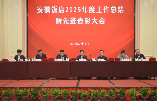 为全面回顾和总结2025年度各项工作成效,科学谋划2026年发展蓝图,2月11日下午,安徽饭店召开2025年度工作总结暨先进表彰大会。省文旅投控集团党委委员、副总经理范星宏,省旅游集团党委委员、副总经理、安徽饭店党委书记、董事长顾建华,省文旅投控集团运营管理部负责人程文俊莅临会议;饭店经营班子成员、中层管理人员及部分职工共160人参加会议。会议由饭店党委委员、副总经理陶涛主持。